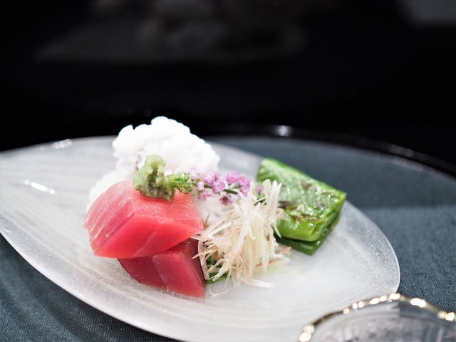 *鱧の落とし 鮪の刺身 梅肉 醤油