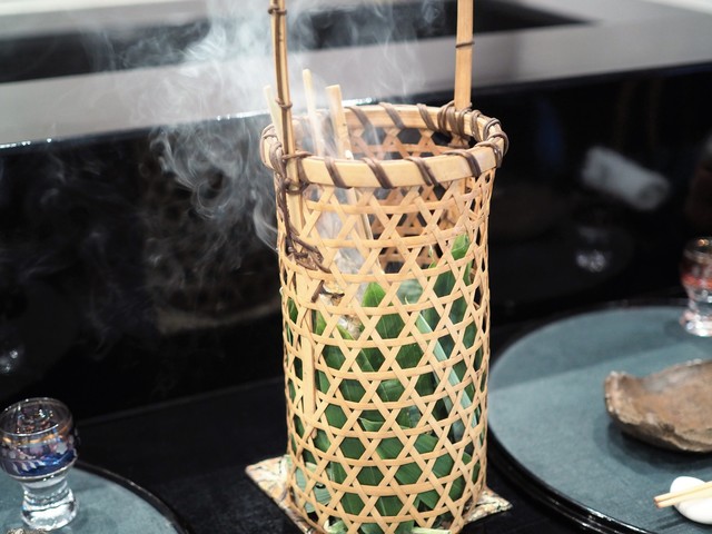 下に燻したお茶の葉を置いてあり、その香りとともに。