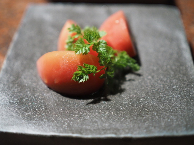 ここの肉は脂の融点が低いので、肉の刺身でもトロッとした味になる。