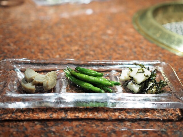 *ナムル3種盛り合わせ 長芋とアオサのナムル 金針菜のナムル 深川ごぼうのナムル