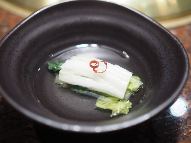 旨みある水に浸けたシャキシャキのキムチ。