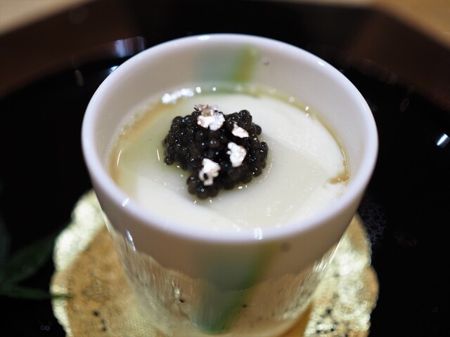 温かい料理でも唯一生臭さが出ないというキャビア(レッドスター)を使い、その塩気とコクがさらに甘みを引き立てる。