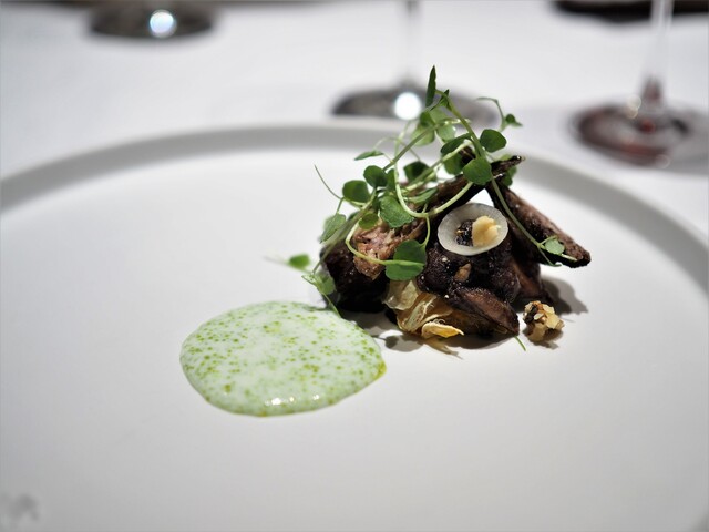 それっぽい風味(ハーブのような香りと少しの苦み)はあるのですが、基本は白身で、シェフが言ってたようにウズラ(山ウズラ)っぽい味。