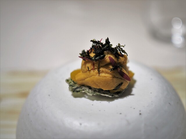 エシャロットの辛味が、雲丹の甘みを削いでいたのがやや残念でしたが、百合根の甘さと雲丹の甘さが合ってました。