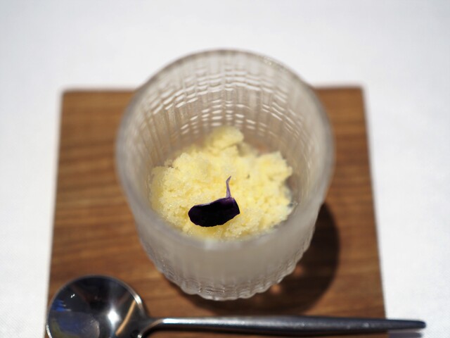 ヨーグルトも使っていて、その酸味とパイナップルの酸味のレベルが合っていて、でもパイナップルのシャープな味をヨーグルトが包み込み、さっぱりしつつデセールの甘やかさを持った秀逸な皿。
