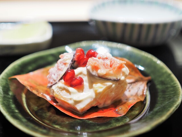 最初に、軽く無花果と柿の白和えを頂いた後に土瓶蒸し。