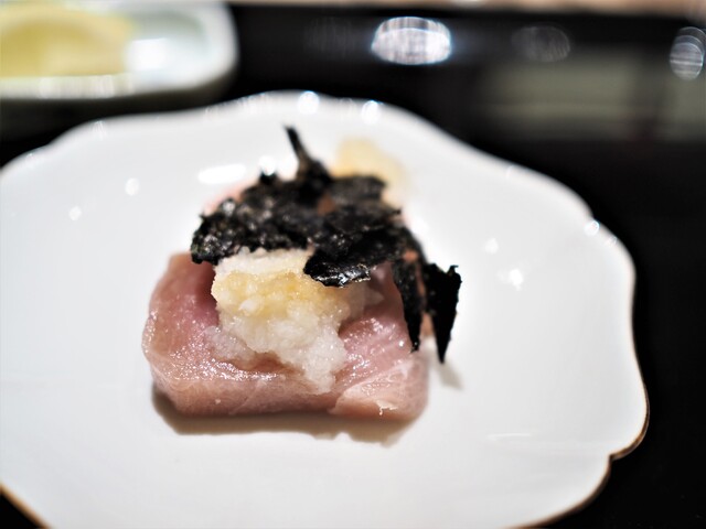寝かした余市のぶりをおろし大根とのりを乗せて