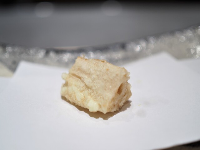 そのためサラサラで、揚げた際に衣に通気孔が沢山あり、衣が油を吸わずに軽い。