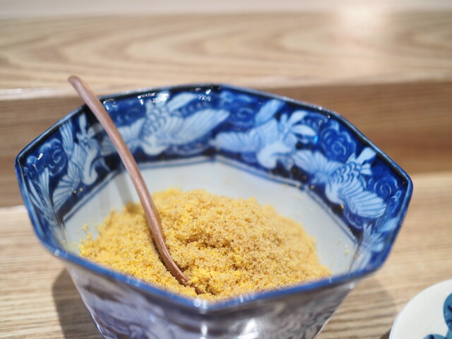 自由に掛けられるカラスミも味付けが柔らかいので、全体のまとまりを崩さずにコクを与える。