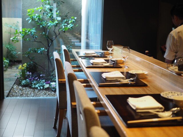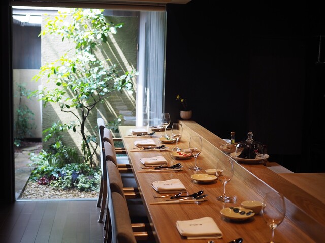フレンチやイタリアンのカウンターは、都内だとテーブル席と一緒の空間ですが、ここはカウンター6席が完全に独立してるので、シェフとの一体感が素晴らしいし、ミニマルで心地よい空間。