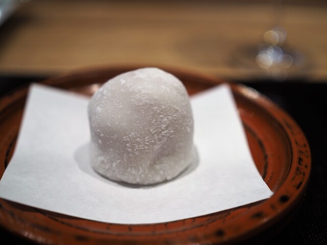 淡雪のように乗せた蕪の甘みが素晴らしく出ていて、でも蕪の甘さなので自然で、雲丹の甘みとバランスが取れており、さらに白甘鯛の旨味とすごくマッチしてる。悶絶。干し貝柱のジュレが、量も旨味も抑制が効いてることもポイント。結果、素材感が損なわれずに輪郭を与える。