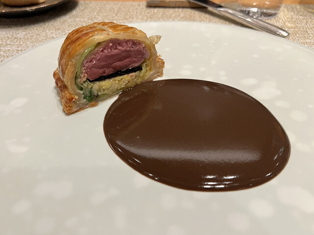そして、ピジョンのパイ包はそこにチョコレートの板かというくらいトリュフが敷かれてました。
