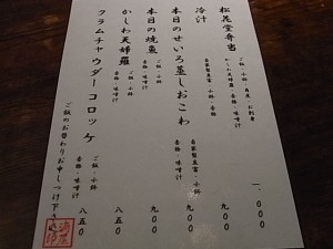 ランチメニュー!850円〜1000円。およよ、「松花堂弁当」なんてのもある(昨日食べたのは「昭花堂弁当」)。