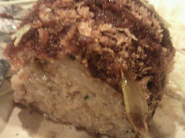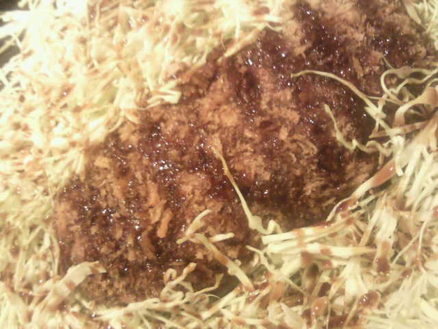 食べれるときになったら・・・切り分けていただきました。切るときに本店ではすっごい肉汁が出たらしいのですが、今回のは残念ながらあまり出ず・・でもこんな状態のボリュームたっぷりのメンチカツ。