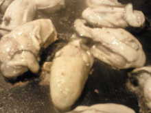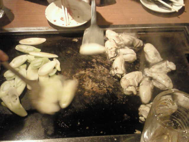 そして焼けてきたら、しょうゆをザーッとかけていただき(店員さんがかけてくれたの)ネギと牡蠣を混ぜるの~。そして食べる。牡蠣好きてでぃは、この中から3つも牡蠣をいただいちゃいました