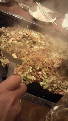 これこのサイズかなり大きいんですよ、人がこれかかえているの~。これで、ここの鉄板2枚分のもんじゃのボリューム。これ最後に来るとすごいよ。