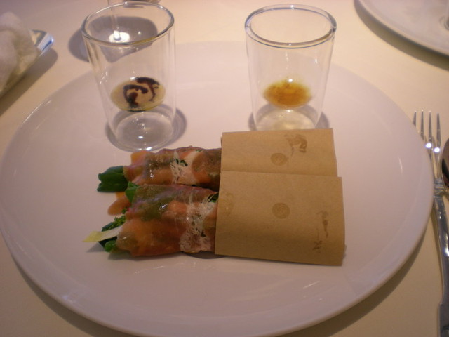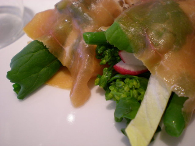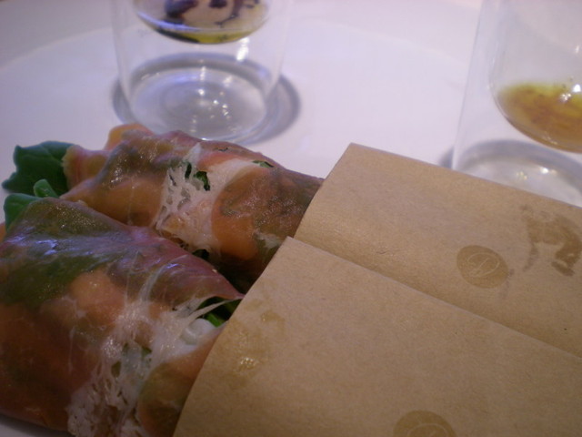 こちらは、サラダを食べやすいようにブーケの形にして生ハムで包んだ一品。