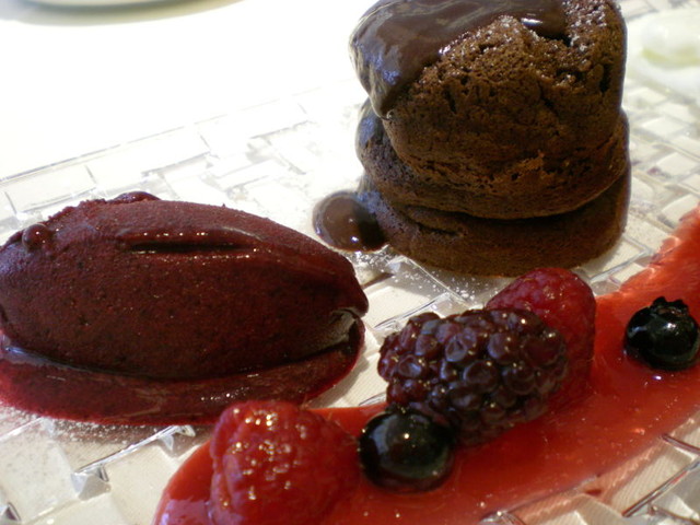 焼きたてチョコレートスフレ いろいろなベリーとマスカルポーネムースを添えて