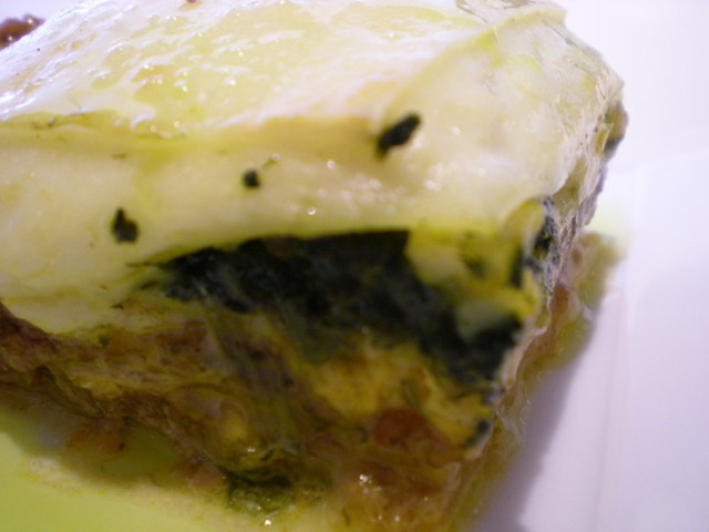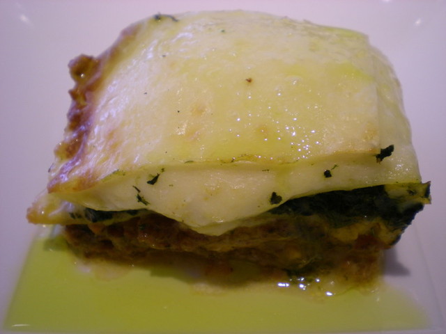 ラディショナルな仔牛肉とポルチーニ茸・たっぷりほうれん草のラザーニャ