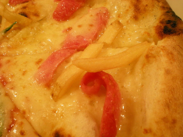 ソーセージのピザwwwなんとー、ポテトフライが乗ってるのよ〜ww