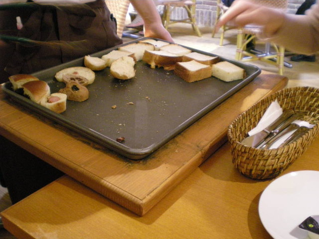 ↓こんな感じで持ってきてくれます。シンプルなパンが多いので選ぶのもちょっと考えちゃいます。