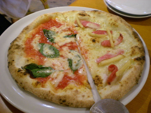 私は、ハーフ&ハーフ(マルゲリータ&ソーセージのピザ)を。