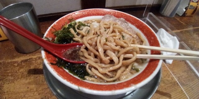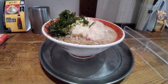 青森の煮干しラーメンはちじれ細麺で一見淡泊なスープ、実は強烈に煮干しが効いているのですが。このラーメンはアブラは少し多めでちょっぴり醤油色の煮干しラーメン。麺は超極太。実は、私、煮干しラーメンでも、灰色に濁ったスープの濃厚煮干しラーメンより透き通った醤油色のラーメンが好み。灰色に濁ってはいないが少しアブラが多くどんな味なのか不安はあったが、食すと苦み渋みが適度にあり、なつかしい青森の煮干しラーメンに近い。アブラがあっても意外とあっさりしている。他にはない秀逸な一品でした。