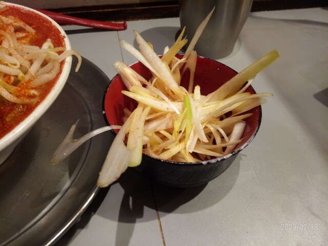最近はトッピングは無し(味をこわすので)ときめてたが、Twitterで限定トッピングの告知、葉玉ねぎ、聞いたことない、初めて聞いた名前なのでトッピング注文(食券)。