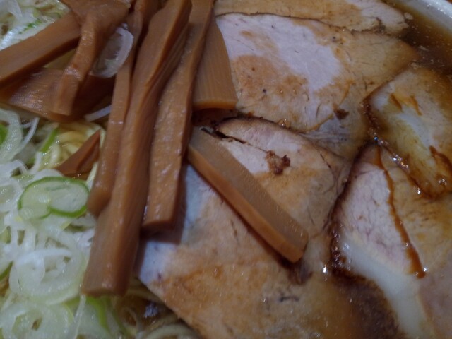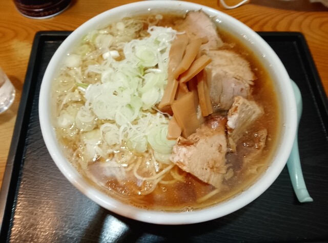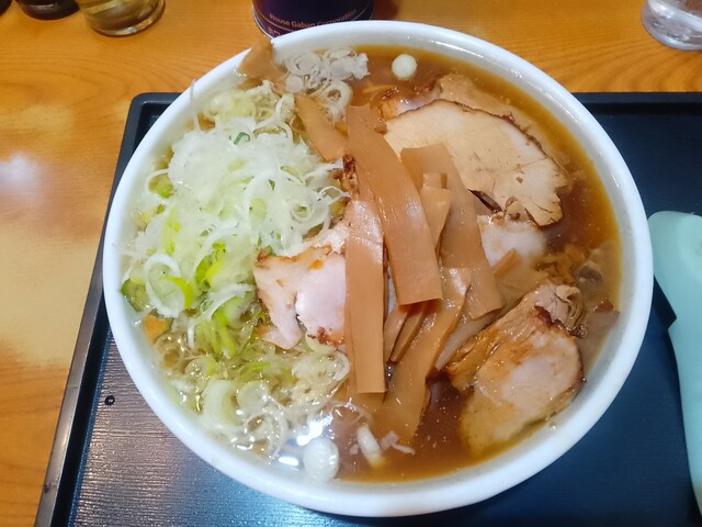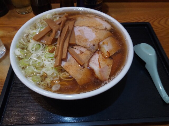 実は、ここのらーめんはチャーシューめんやメンマらーめんを注文しなくても、チャーシューもメンマもどっさり入っている。本当は、ネギ多めをしなくてもかなりの量。多めをお願いしても普通のネギがそもそも多いので違いははっきりしないがとにかく多い。ネギ好きにはたまらない。