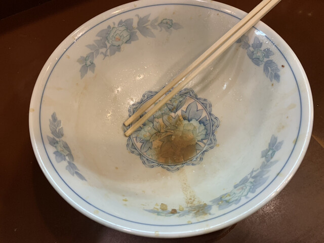 朝ごはんが遅かったこともあり全部食べきれるか不安はありましたが、いざ食べ始めるともう夢中。カウンター席の男たちが一斉に麺に食らいつく絵図。