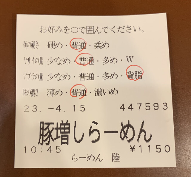 55歳の誕生日を迎えてから初のラーメンを『らーめん陸』で。
