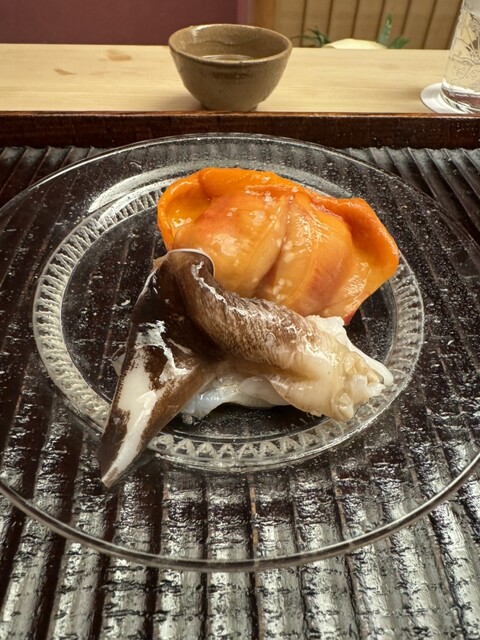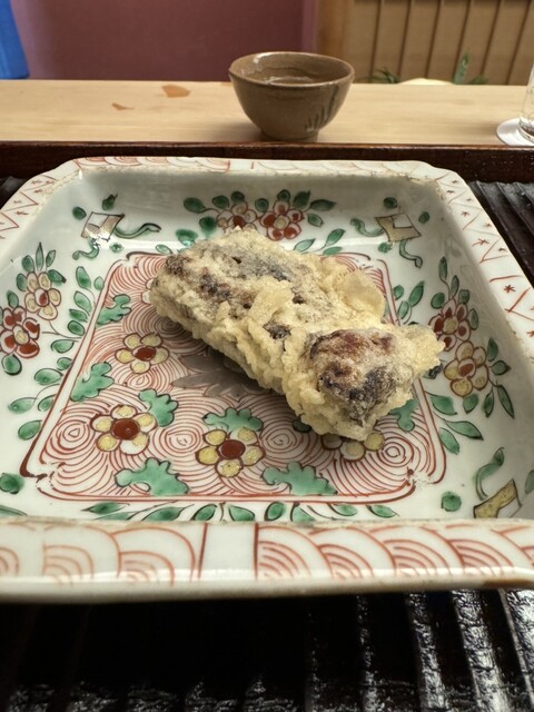 夏の終わりを告げる残り鱧でしょうか。鱧雲呑は初めて頂きましたが、美味しかった。ぶどうの天ぷらも初めて。かぼちゃの甘さとはまた違った甘さで美味しい。毎回楽しさと美味しさを感じる素晴らしい時間です。