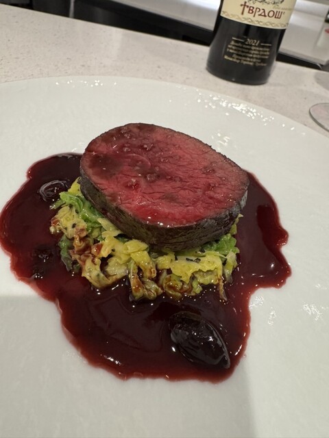 今年最後のメニューを頂きました。2025年1月もまだこちらのメニュー頂けるそうです。白子のリゾットは去年よりも進化していました。マデラ酒を使ったソースが良いアクセント。メインの蝦夷鹿。この価格帯でアッパレな一皿。猟師さんから直接仕入れているということで、柔らかく鹿肉っぽさを上手く残しつつも、食べやすい柔らかいお肉でした。また2025年も楽しみにしています。