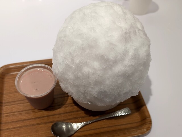 肝心のお味ですが、とても美味しい。頭のシロップがふわふわの氷をいい感じに柔らかくしてくれてなんとも言えない柔らか甘い感じがとても良いです。ですが、おかわり氷は失敗しました。シロップがかかっていないので一つのいちご練乳では足りず、追加で2個の練乳(あずきと普通の)を注文したのでコスパ的にも味的にも微妙でした。それならシロップが掛かったかき氷を2つ注文したほうが絶対良いです。