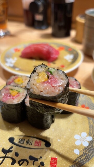 こちらは、豊洲市場の初競りで「5年連続一番マグロ」を落札していることでも有名な“銀座おのでら”が手掛ける廻転鮨。