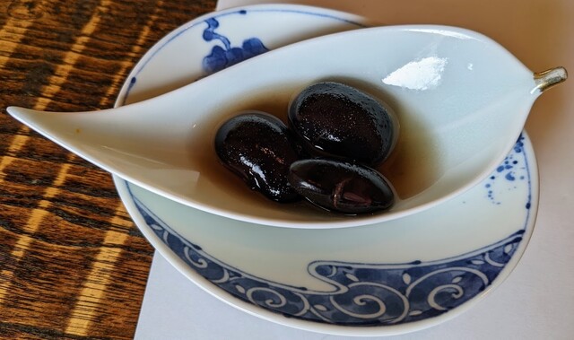 基本的に和食ながら、ところどころ洋食の素材が顔を出すのもランチと共通で、じゃがいもの冷製スープにオリーブオイル、黒にんにく粉がかかっているのも、これまでにない味わいで新鮮。これもおかわりしたいくらいおいしかった……。