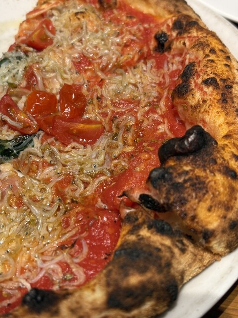 豚肉のポルケッタの香りとチーズの香りがたまらないバランスで口の中に広がり、生地の程よいスモーキーな香りが合わさって至福でした。
