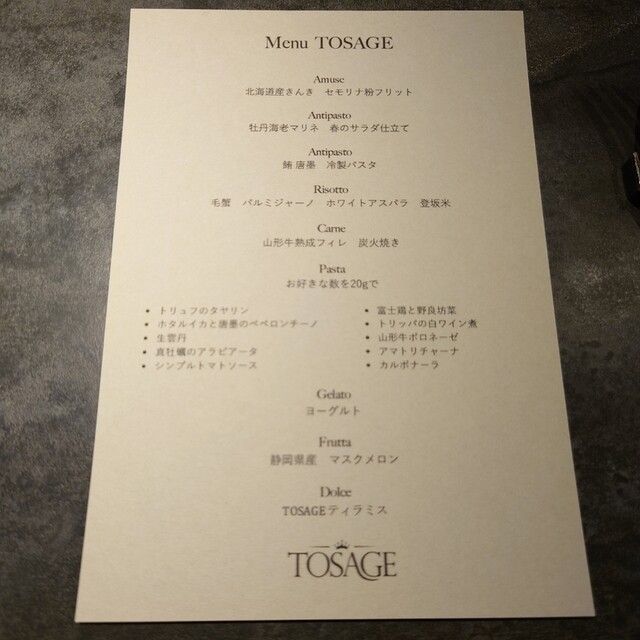 TOSAGE(麻布十番、六本木、広尾/イタリアン、パスタ、ワインバー)