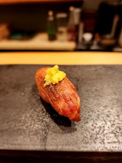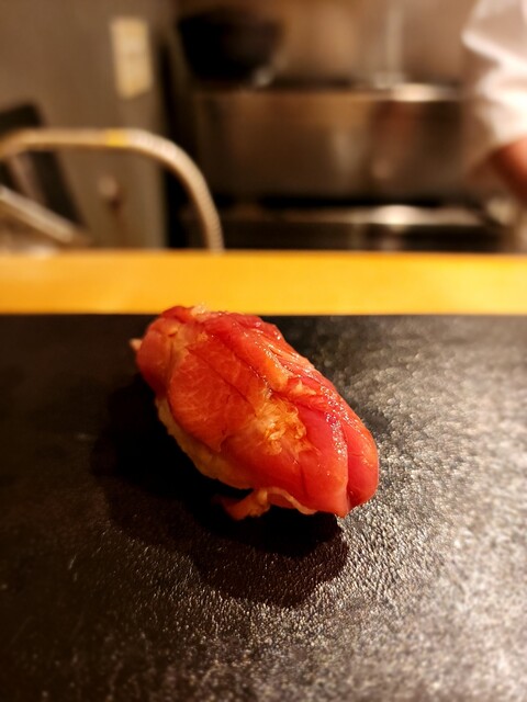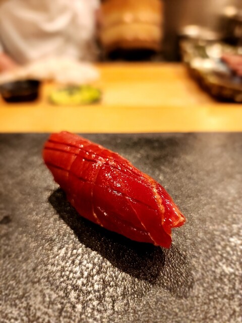 赤身、旺盛な鉄分。非常に力強い旨味を感じる。