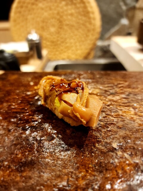 蒸し鮑、この季節が来たと実感する。夏に味わう星山大将の鮑は格別だ。香りが溢れ繊細で深い甘味が染みていく。火の入れ方も素晴らしく香りと旨味を引き出しておられる。