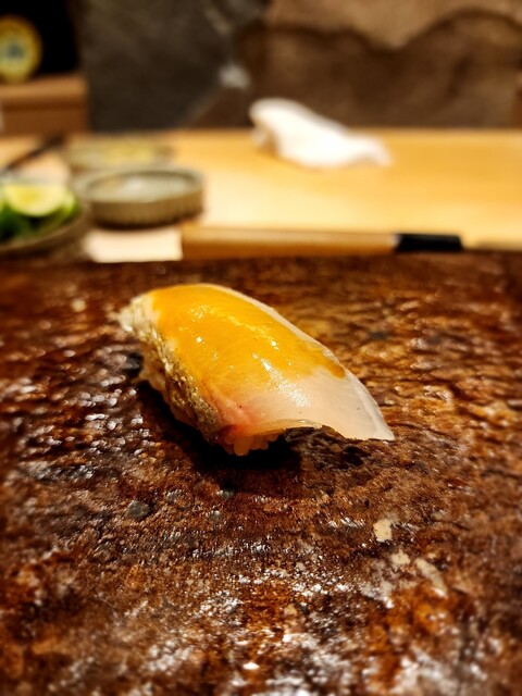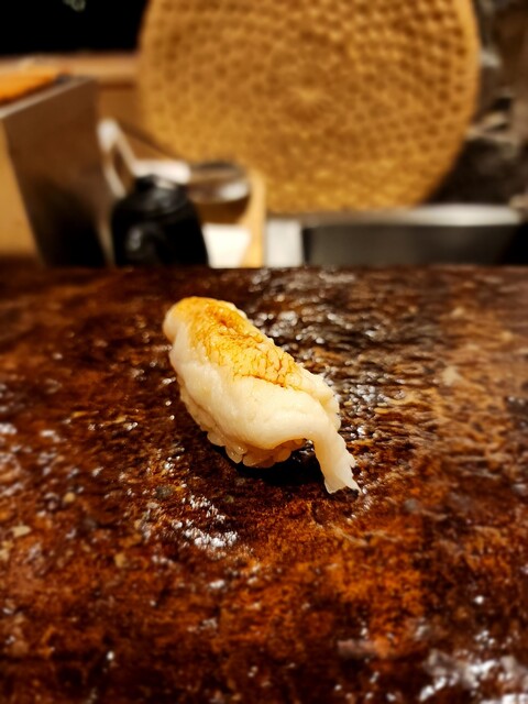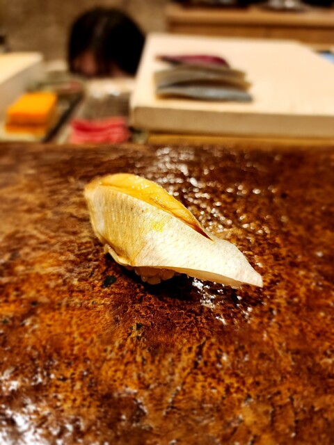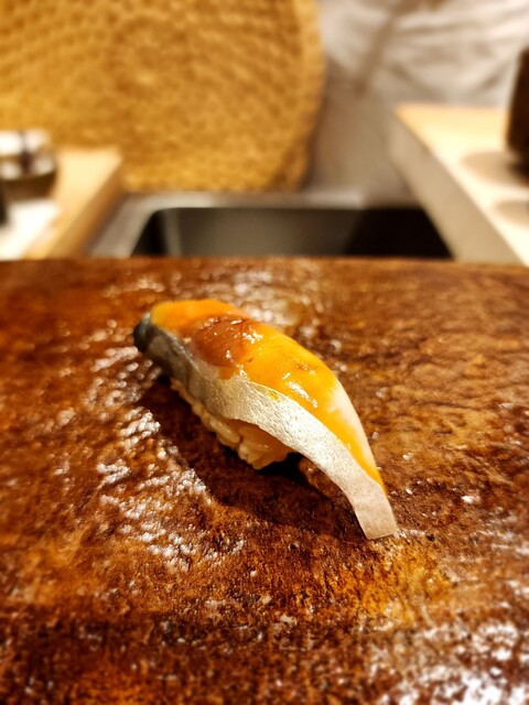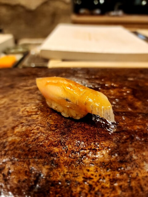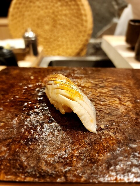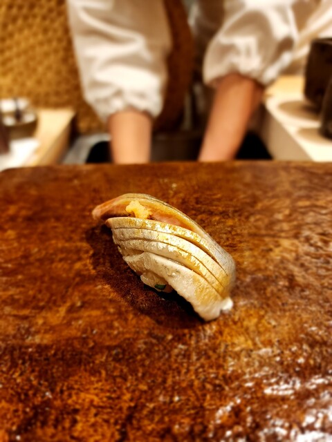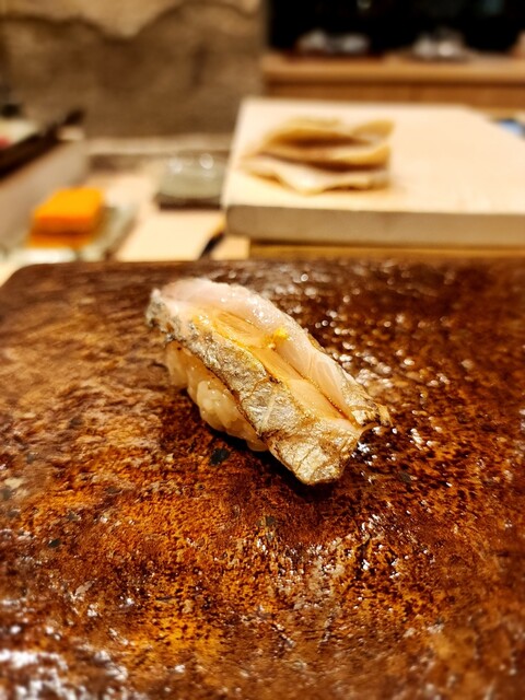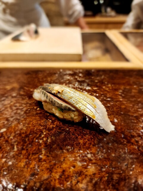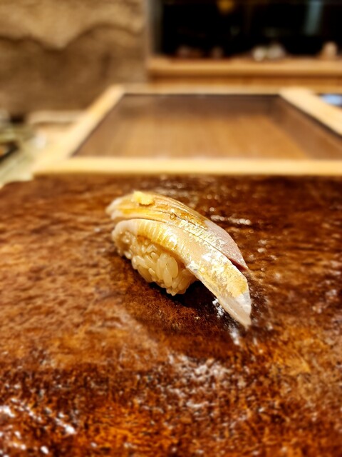 細魚、力強く〆られ旨味の凝縮具合が緻密だ。キリっとした味わいも楽しめ秀逸。