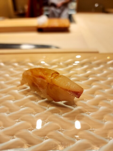 鯵、鹿の子が美しい。脂がぷっくりと膨らみインパクトのある一貫。