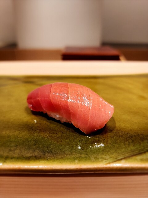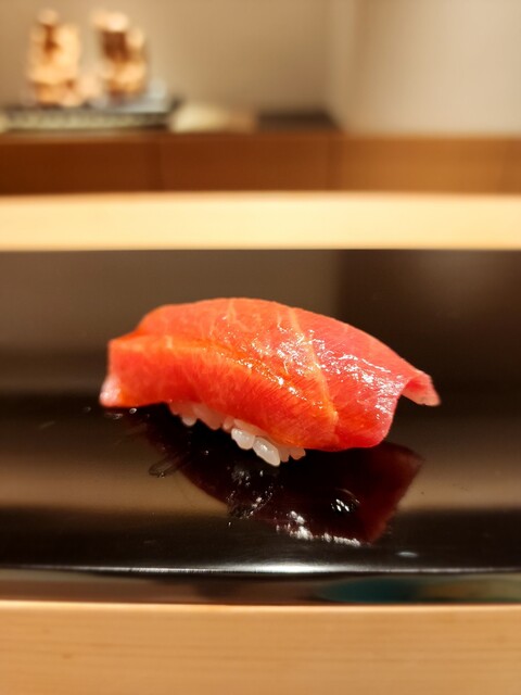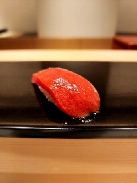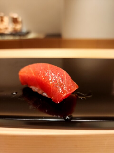 赤身、重厚感のある鉄の旨味にふわっと酸味が滲む。