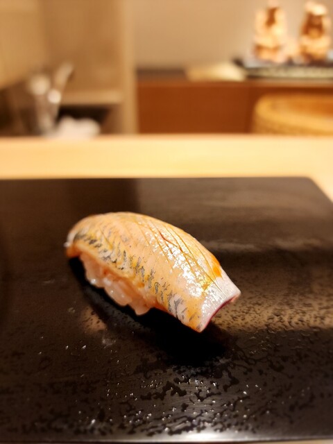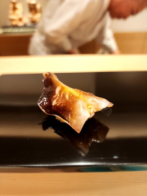 鰆、皮目を炙られ、脂が溢れる。とろとろの鰆。