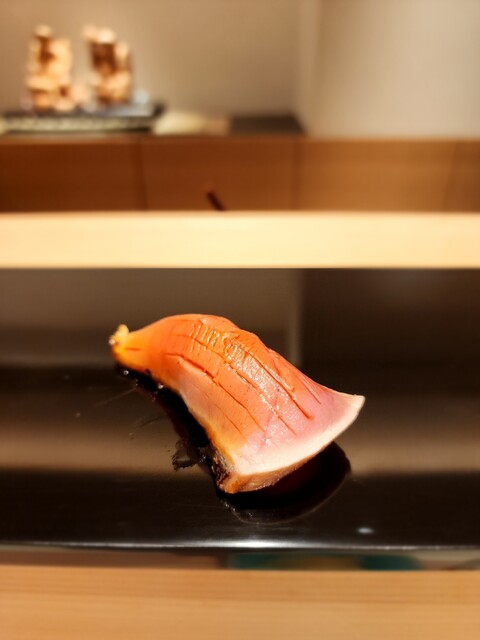 肉厚な鳥貝、甘味が可憐で香りも清々しい。季節の移ろいを感じる一貫。