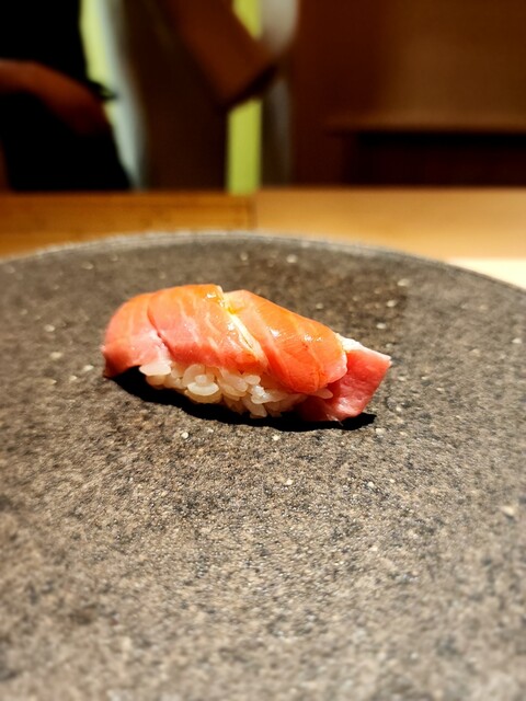 トロ、魚体は変わり塩釜。軽やかな脂がじゅわっと蕩ける。余韻は爽やかな。