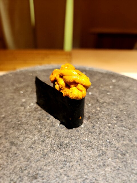 海胆、殻付きから剥かれ、四日程寝かされる。甘味が濃縮され濃厚。