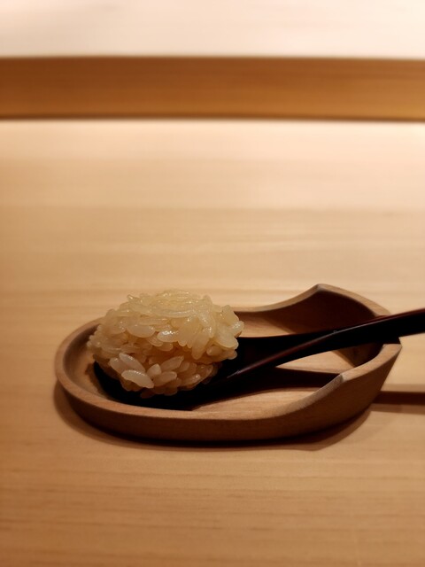 きりっとしたら酸味、艶やかで米の甘味が徐々に広がってくるシャリ。種との力強い一体感が魅せる完成度の高いシャリ。