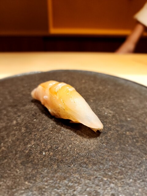 鮃、むっちり香りが立ち上がる。締め仕事にも風格がある。赤酢のシャリはコクが深く塩気がキリッとしております。温度帯も良好で中々にパンチのあるシャリだと感じました。