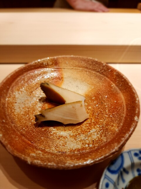 蒸し鮑、ぐっと香りが充満する。柔らかくもしっかり反発する食感から旨味が横溢する。繊細な仕事。